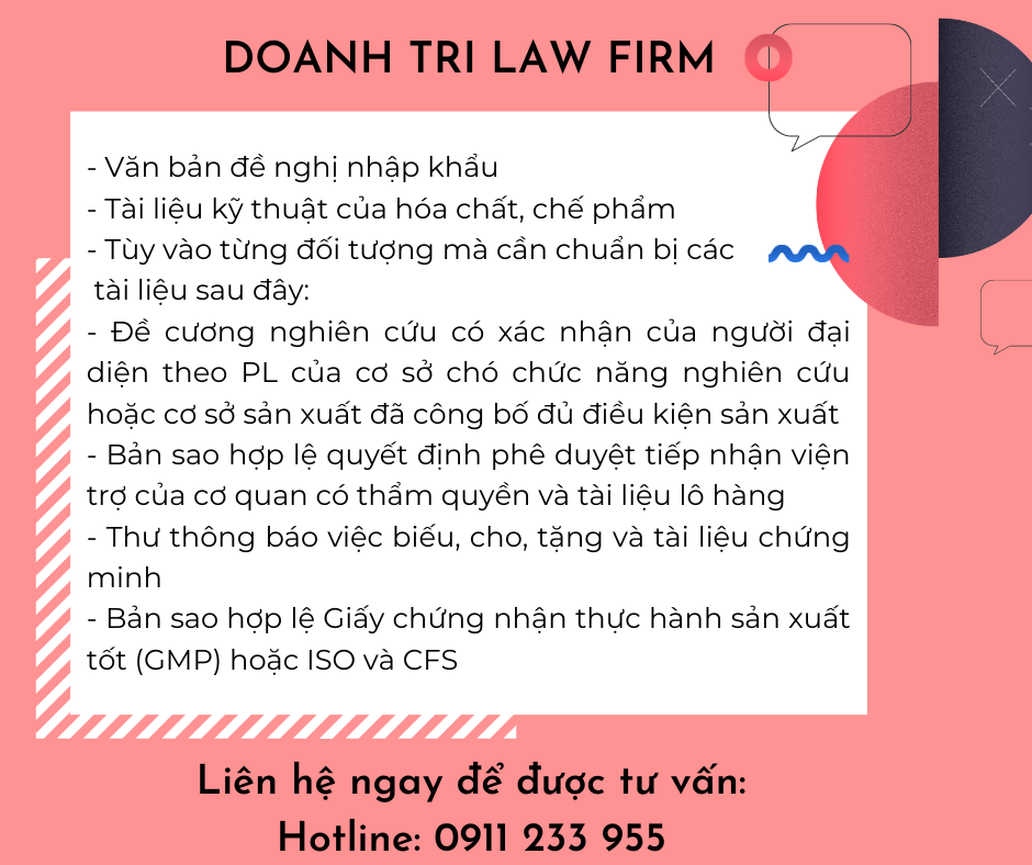 - Hóa chất, chế phẩm nhập khẩu để nghiên cứu;