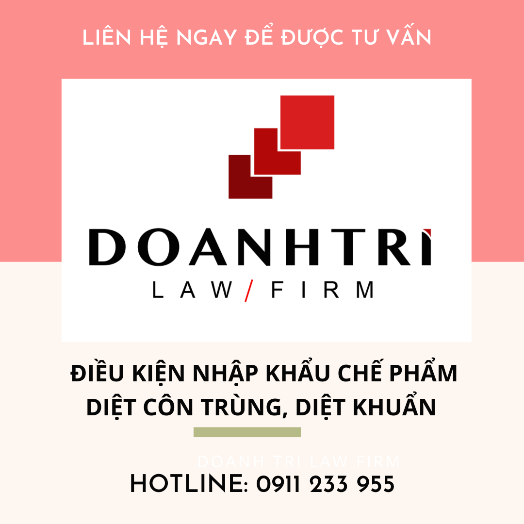 Trên đây là những tư vấn cơ bản của Luật Doanh Trí về hồ sơ, thủ tục nhập khẩu chế phẩm diệt côn trùng diệt khuẩn. Luật Doanh Trí với sứ mệnh "tuân thủ pháp luật" và thỏa mãn nhu cầu của mọi đối tượng khách hàng tạo nền tảng và cảm hứng cho sự thành công của Quý khách hàng. Nếu như quý khách hàng có nhu cầu tư vấn, thực hiện thủ tục hãy liên hệ ngay với chúng tôi để được tư vấn, hướng dẫn thực hiện.