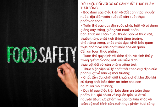 1. Cơ sở sản xuất thực phẩm tươi sống phải bảo đảm các điều kiện sau đây: